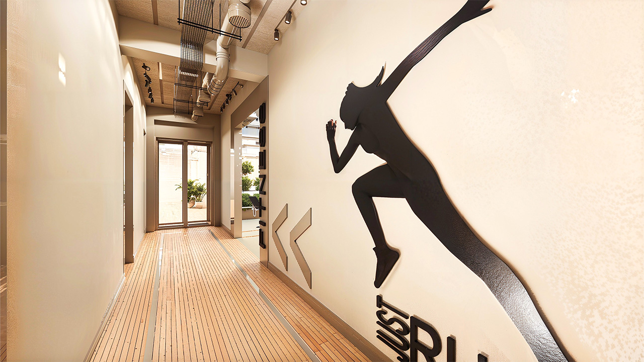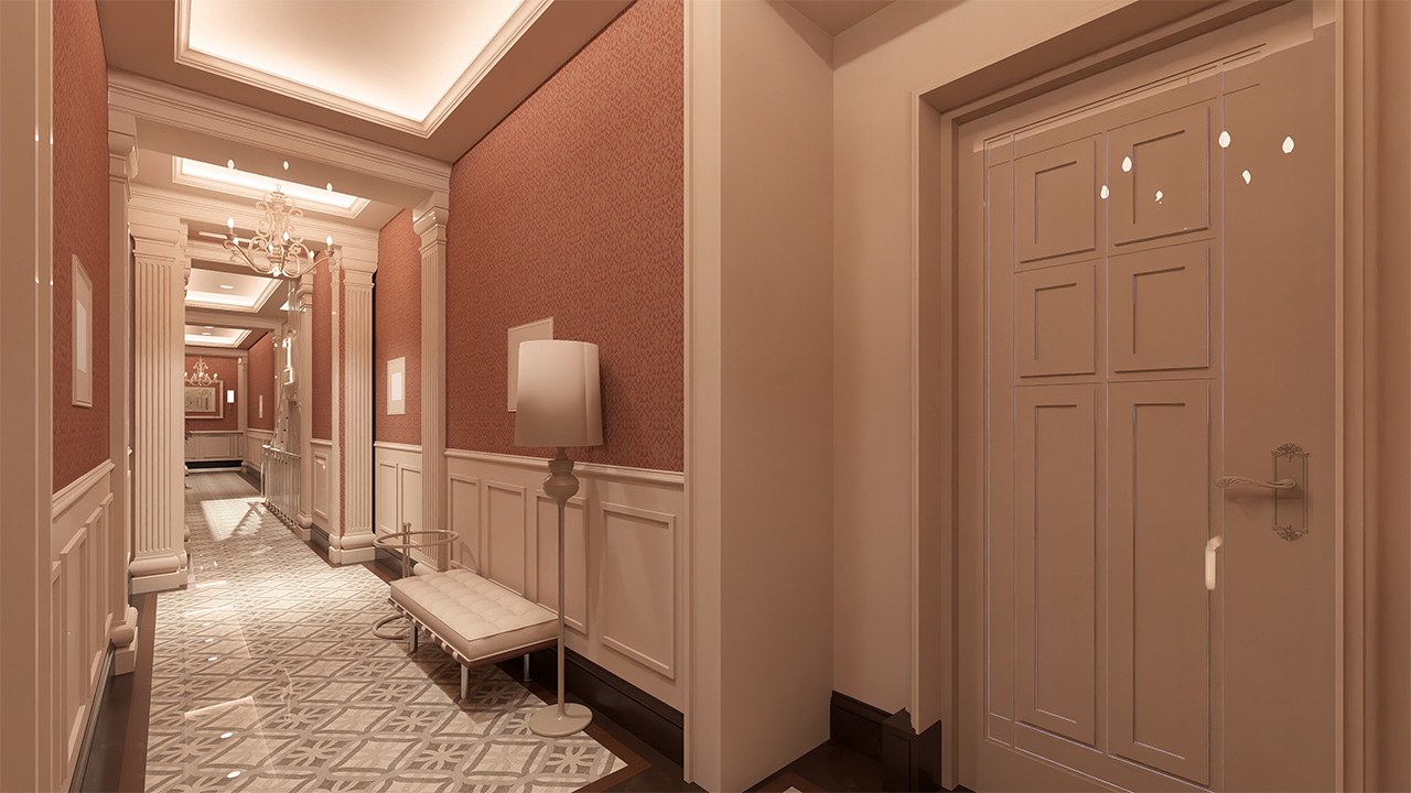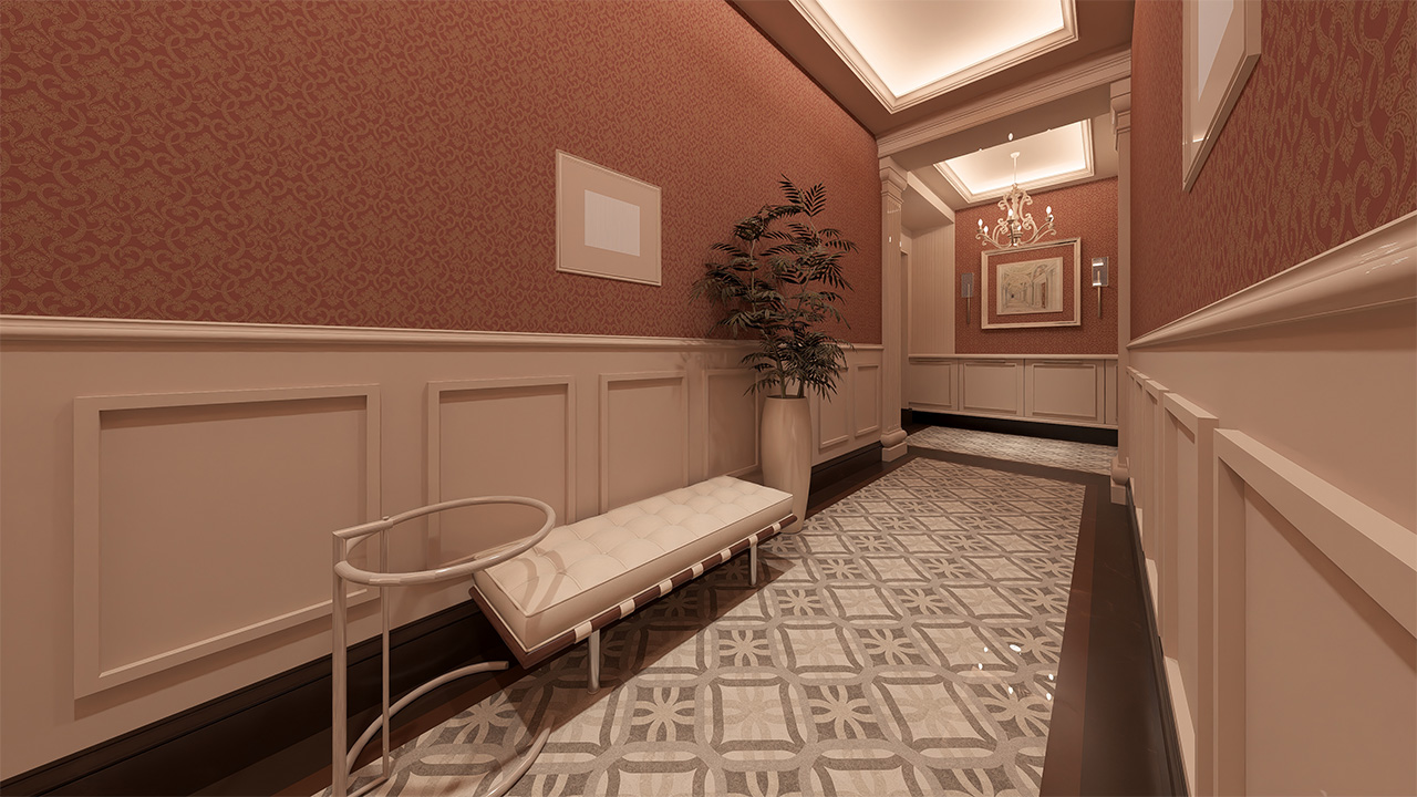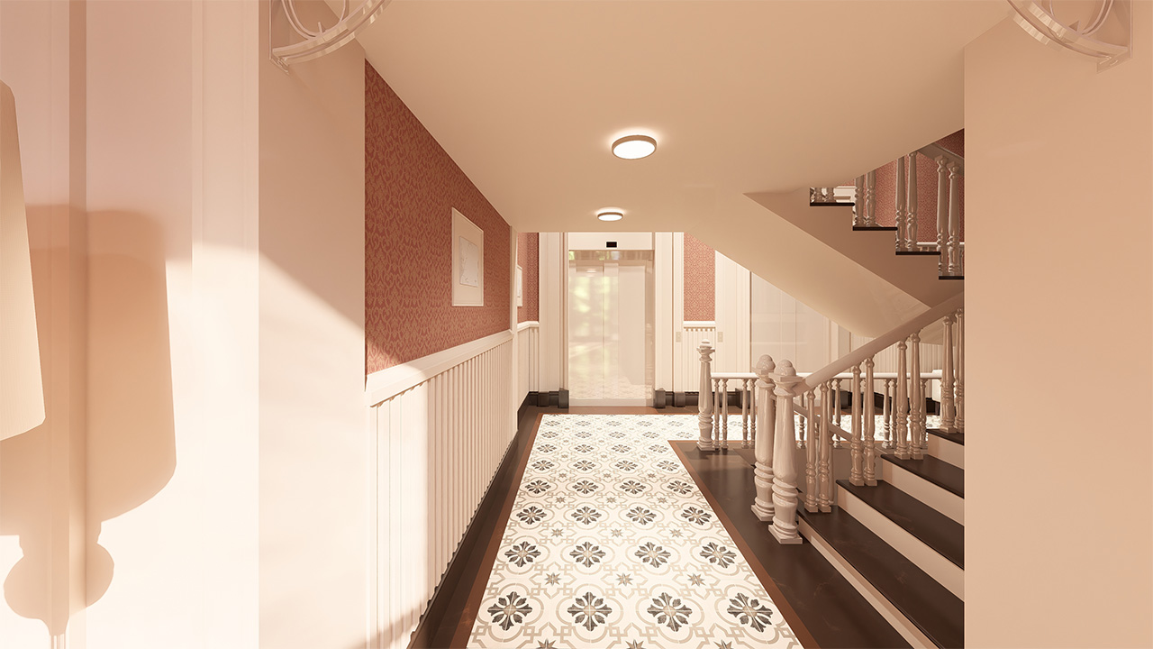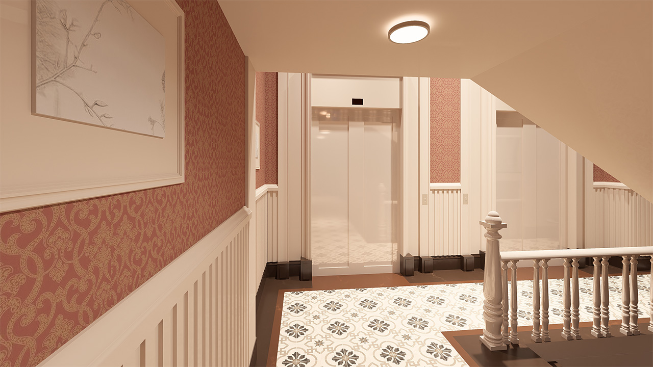 Kat koridorlarında estetik, sadelik ve kullanım kolaylığı bir arada sunuluyor. Bütünlüklü tasarımıyla ortak alanlarda da kalite hissediliyor.