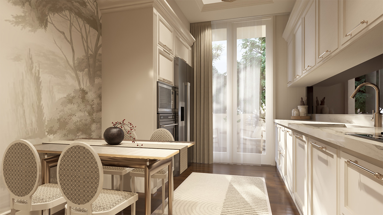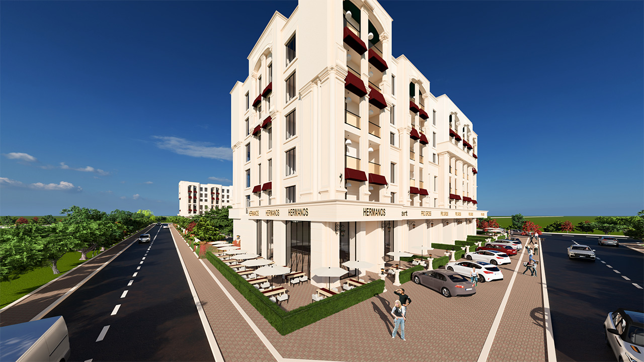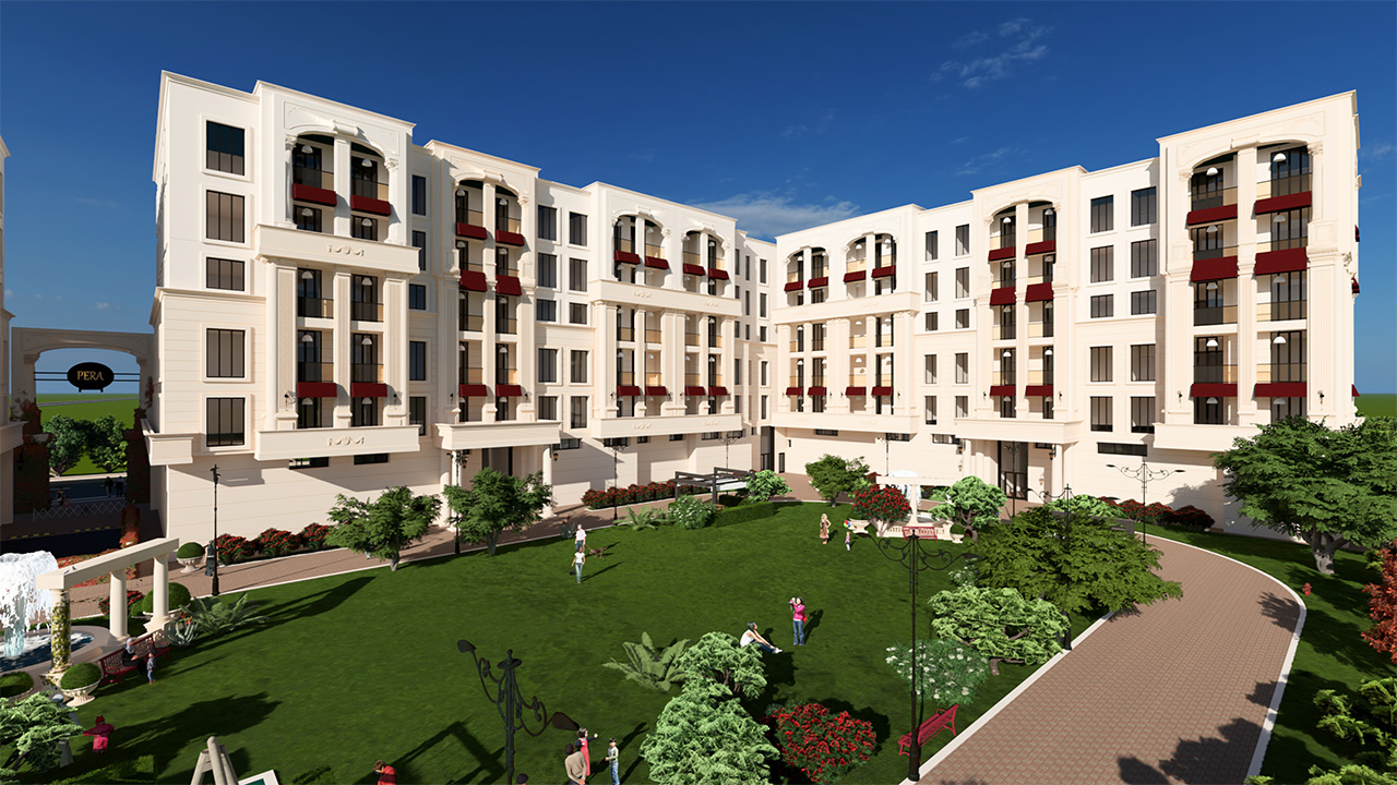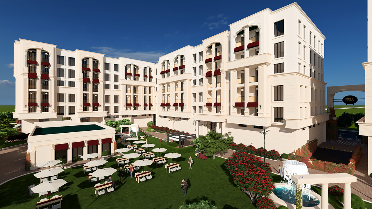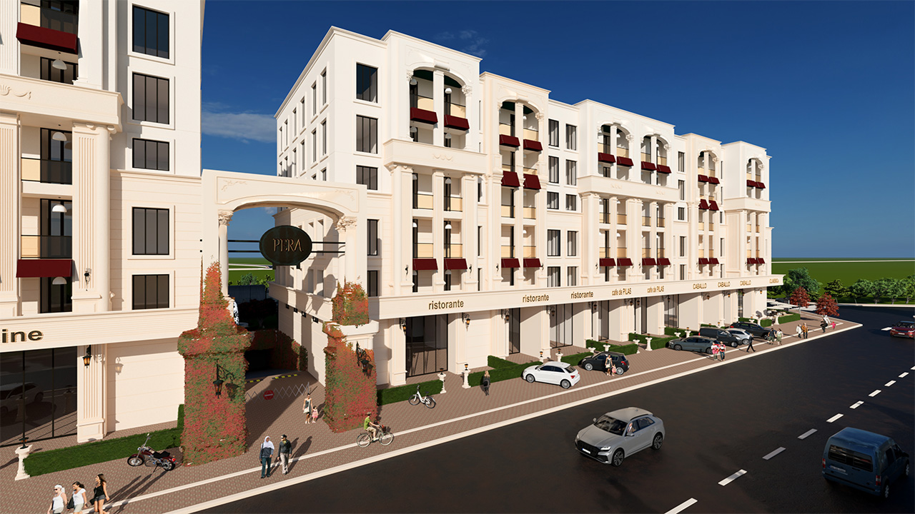 Projenin dış cephesinde, klasik çizgiler modern bir yorumla buluşuyor. Sade ama etkileyici mimarisiyle Vera Palace, bulunduğu çevreye zarif bir siluet kazandırıyor.